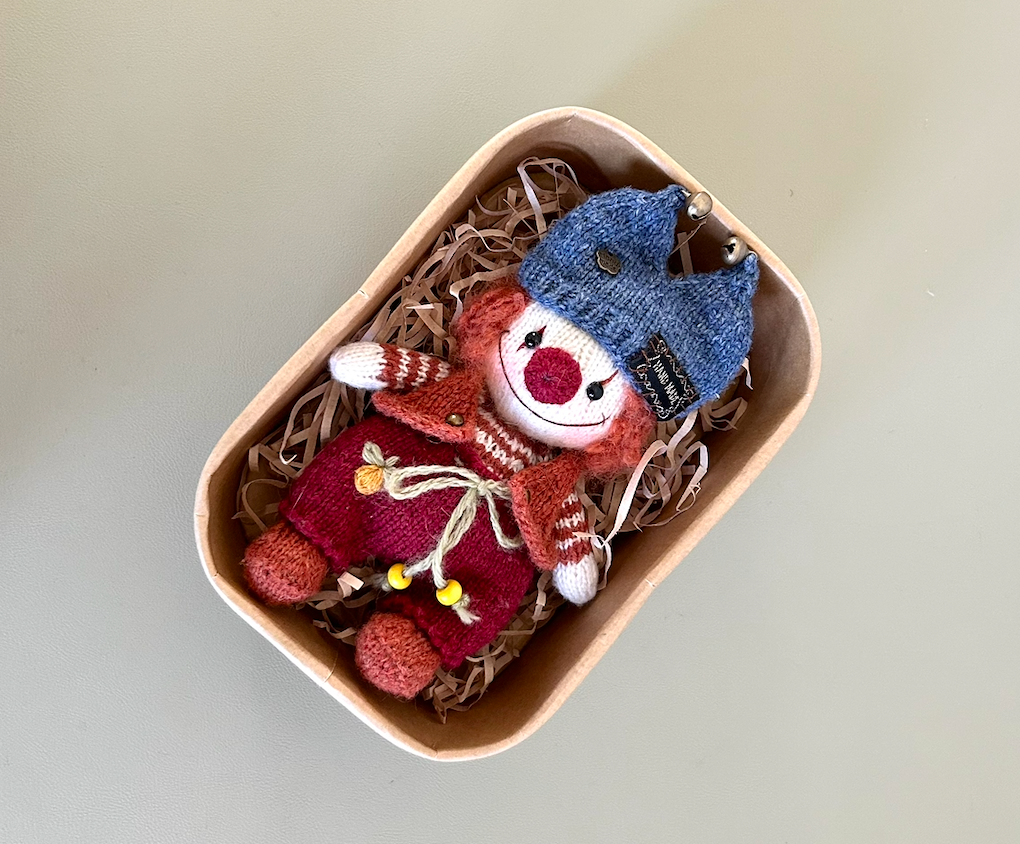 This Cozy Crochet Clown Doll is carefully crafted with soft yarn and charming details, giving it a playful personality and heartwarming presence. With its cheerful smile, textured outfit, and cozy hat, this little doll feels like a nostalgic storybook character brought to life.